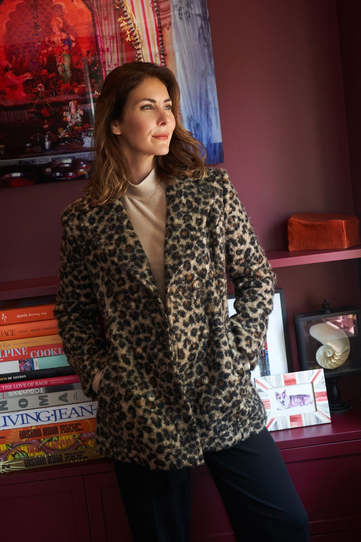 Met deze stijlvolle faux fur jas met panterprint maak je elke outfit onweerstaanbaar chic. De zachte, warme stof voelt heerlijk comfortabel aan en geeft je direct een luxe uitstraling. Dankzij de klassieke reverskraag en de rechtvallende pasvorm is deze jas zowel tijdloos als trendy – ideaal voor de herfst en winter.