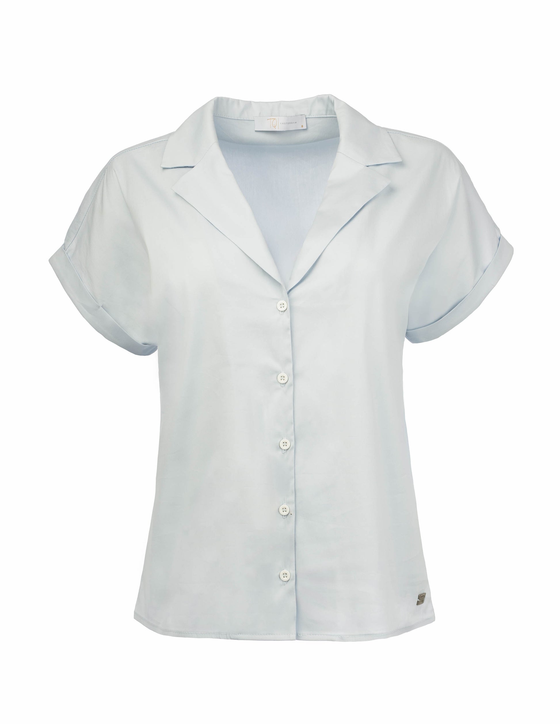 Deze blouse is uitgevoerd met een reverskraag en een knoopsluiting aan de voorzijde, wat het ontwerp een moderne en licht geklede look geeft. De korte mouwen met een subtiele omslag zorgen voor een luchtige en casual touch. Dankzij de soepelvallende stof draagt de top comfortabel en beweegt hij mooi met je mee.