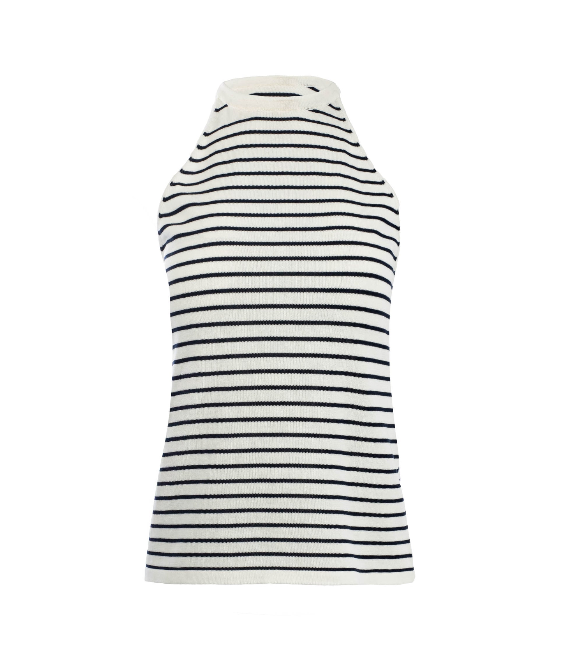 Deze mouwloze top met zwart-witte strepen is een tijdloze essential met een moderne en vrouwelijke uitstraling. Het fijne horizontale streepdessin geeft de top een frisse, nautische look, terwijl de monochrome kleurencombinatie zorgt voor een stijlvolle en veelzijdige basis.