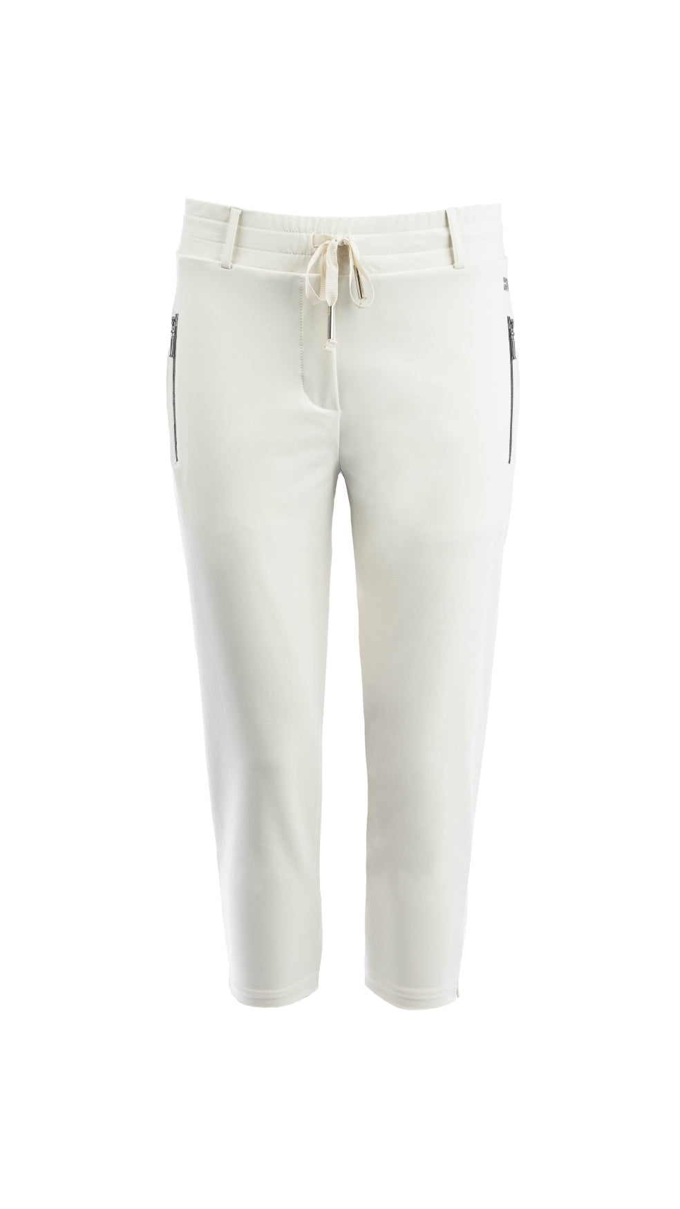Deze capri travelstof broek van TQ Amsterdam is voorzien van een tailleband met koord, imitatiegulp, zakken met rits en twee paspelzakken op de acherkant. De broek is gemaakt van een mooie geweven travelkwaltiet bestaande uit polyamide en elastaan, wat zorgt voor een comfortabel draagcomfort.