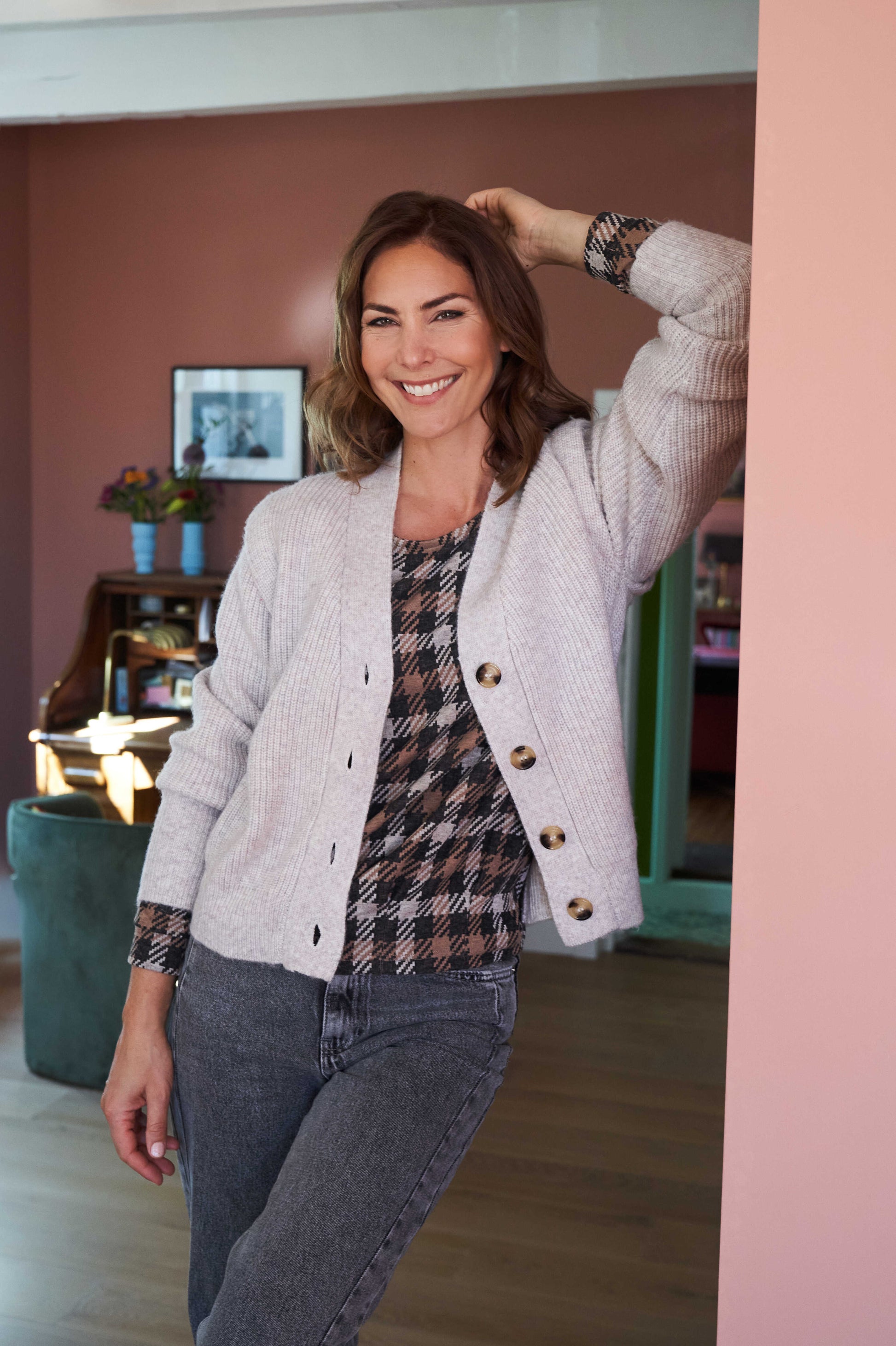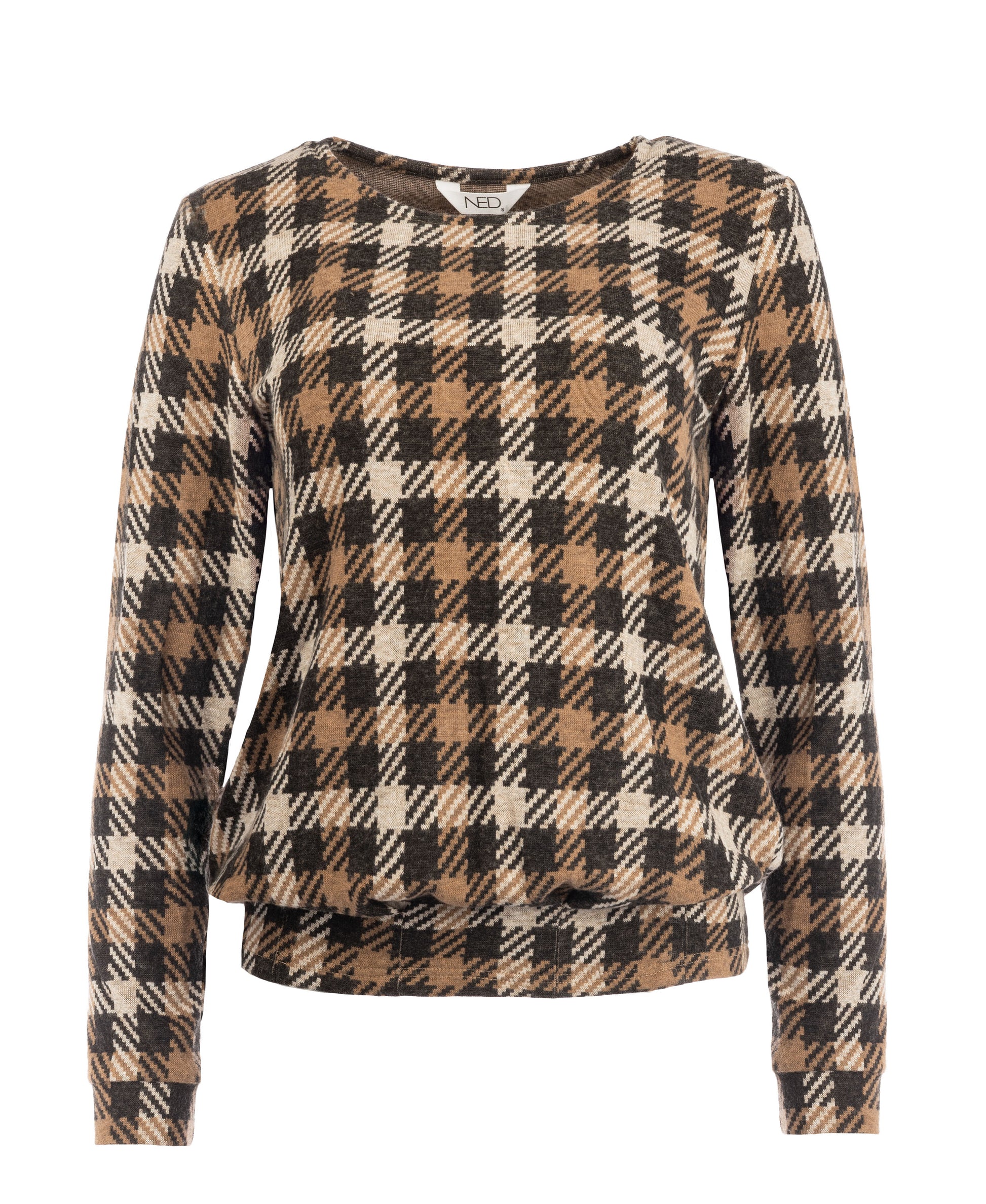 Deze stijlvolle top is een must-have voor elke garderobe. Het verfijnde ruit motief in warme tinten geeft een luxe uitstraling, terwijl de zachte stof zorgt voor optimaal draagcomfort. Dankzij de ronde hals en lange mouwen is de top ideaal voor zowel zakelijke als casual gelegenheden.