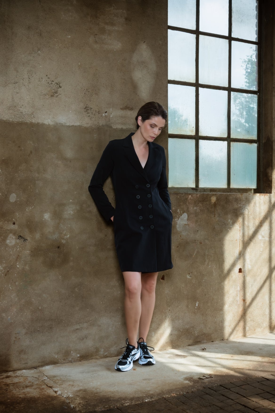 De blazer-jurk is gemaakt van een mooie geweven travelkwaliteit bestaande uit polyamide en veel elastaan, wat zorgt voor een stijlvolle look en hoog draagcomfort.