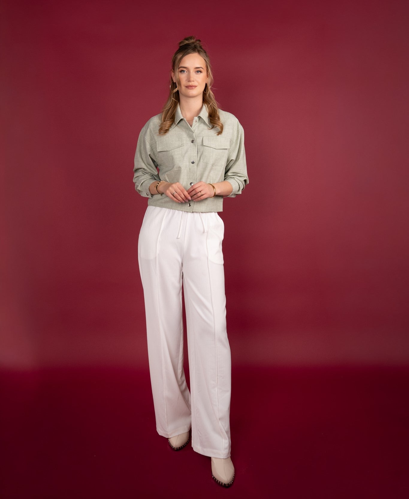 Combineer met een bijpassende broek voor een co-ord set, of draag over een jurk of jeans voor een frisse, casual chic uitstraling.