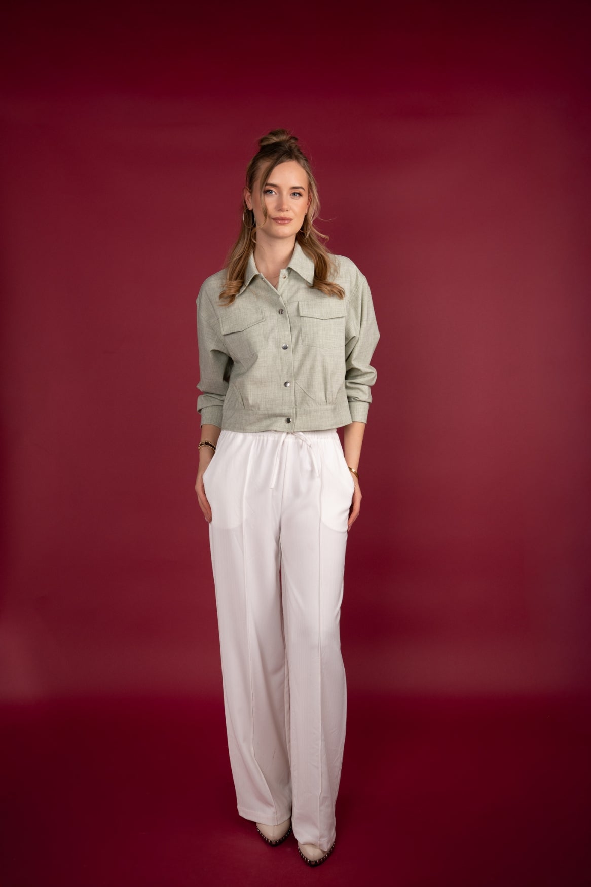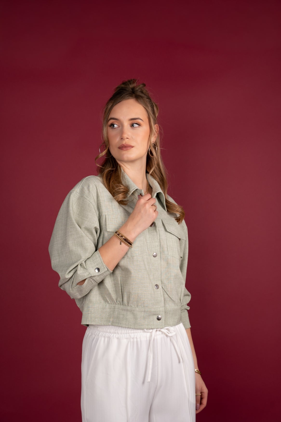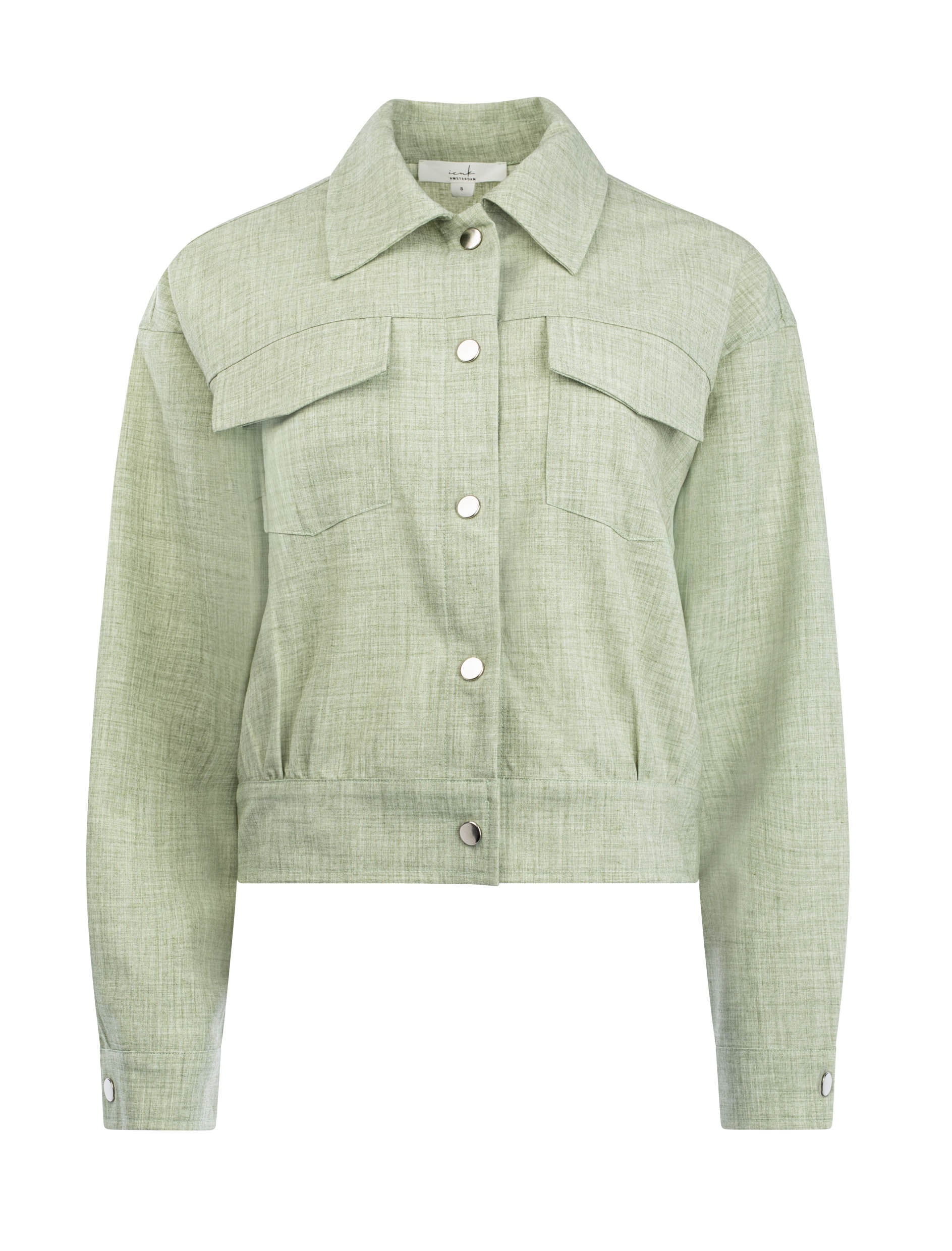 Deze cropped jas in zachte tint is een moderne must-have met een frisse en vrouwelijke uitstraling. De subtiel gemêleerde structuur geeft de jas een natuurlijke en verfijnde look, terwijl de zachte groentint zorgt voor een stijlvolle, eigentijdse basis. Perfect voor het voor- en najaar of als licht jasje op frisse zomerdagen.