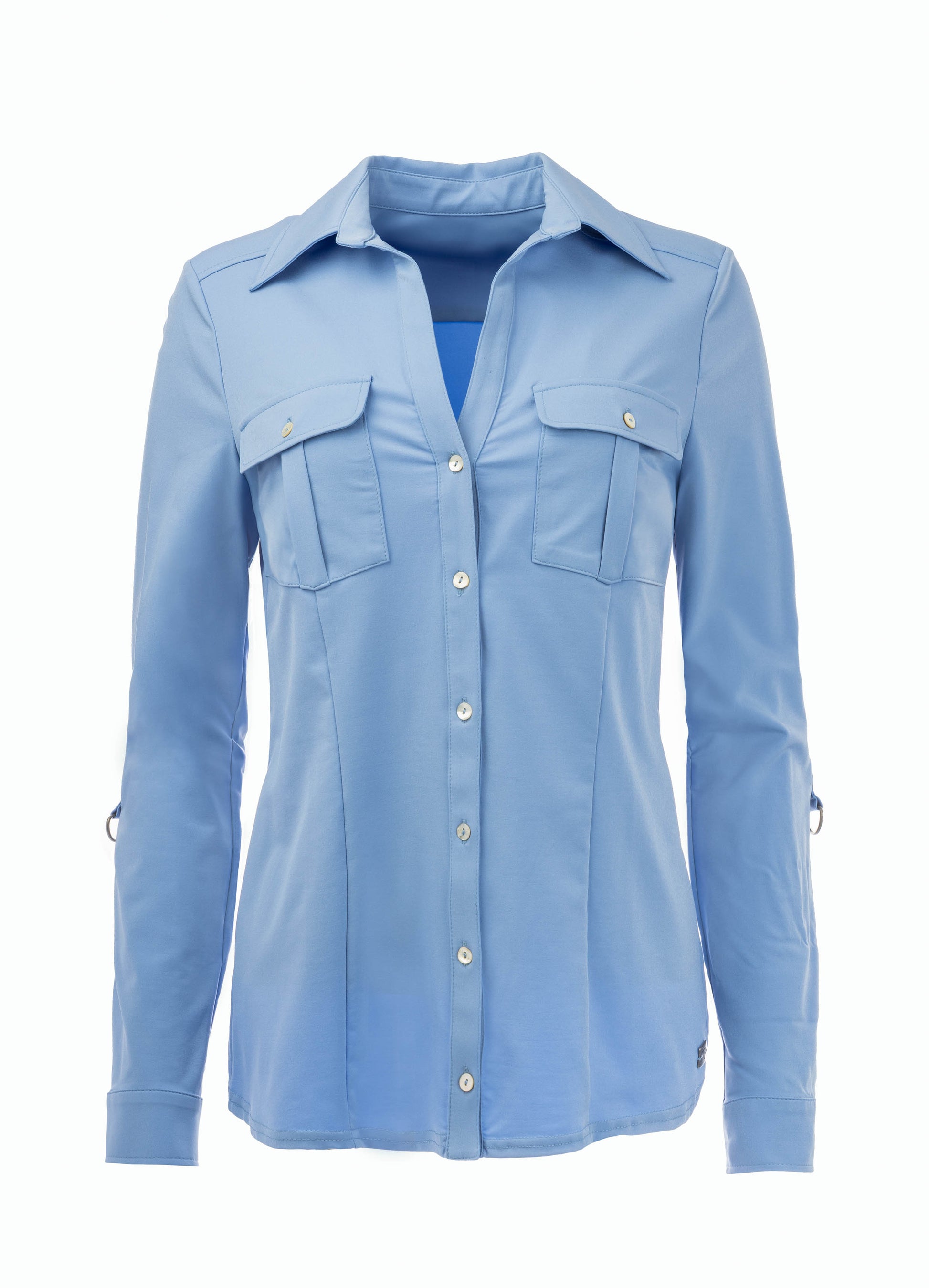 Deze Travelstof blouse van de TQ Amsterdam heeft een mao kraag, wijde mouwen met mooi detail bij de schouder en brede manchet en is gemaakt van een mooie geweven travelkwaliteit bestaande uit polyamide en veel elastaan, wat zorgt voor een stijlvolle look en hoog draagcomfort.