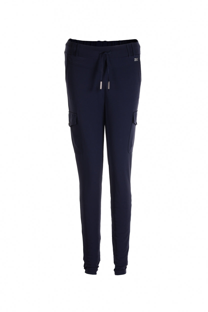 Comfy days! Deze Travelstof broek van TQ Amsterdam heeft een elastische tailleband en sierkoordje met metalen koordstoppers. De broek heeft opgestikte klepzakken (workerzakken) aan de zijkant en een klein omslag onderaan de pijpen. De broek is gemaakt van een mooie geweven travelkwaliteit bestaande uit polyamide en veel elastaan, wat zorgt voor een comfortabele fit.