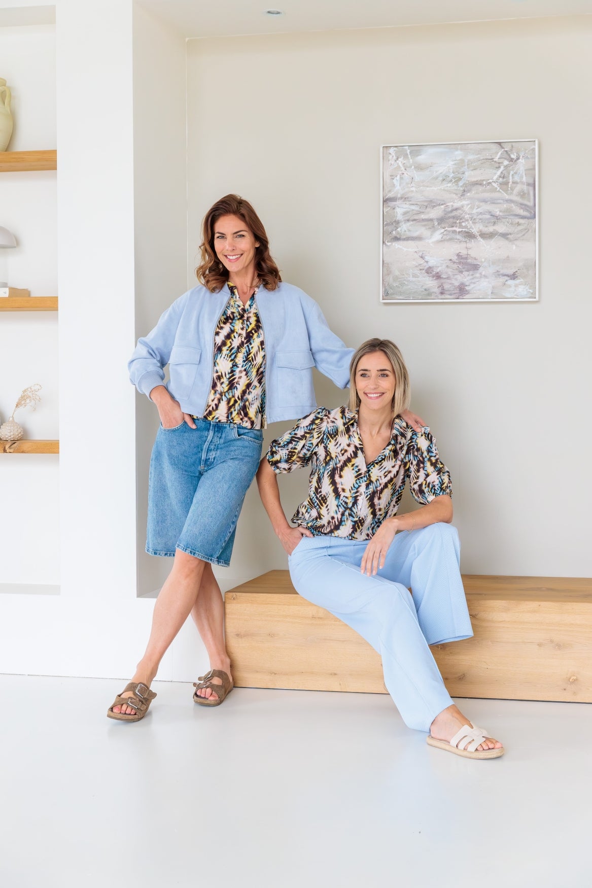 Deze top met abstracte print in warme aardetinten is een stijlvolle eyecatcher met een moderne en vrouwelijke uitstraling. Het expressieve dessin in nuances van beige, bruin, blauw en zachte groentinten zorgt voor een luxe en eigentijdse look. De combinatie van natuurlijke kleuren maakt deze top veelzijdig en eenvoudig te combineren binnen zowel een zakelijke als casual garderobe.