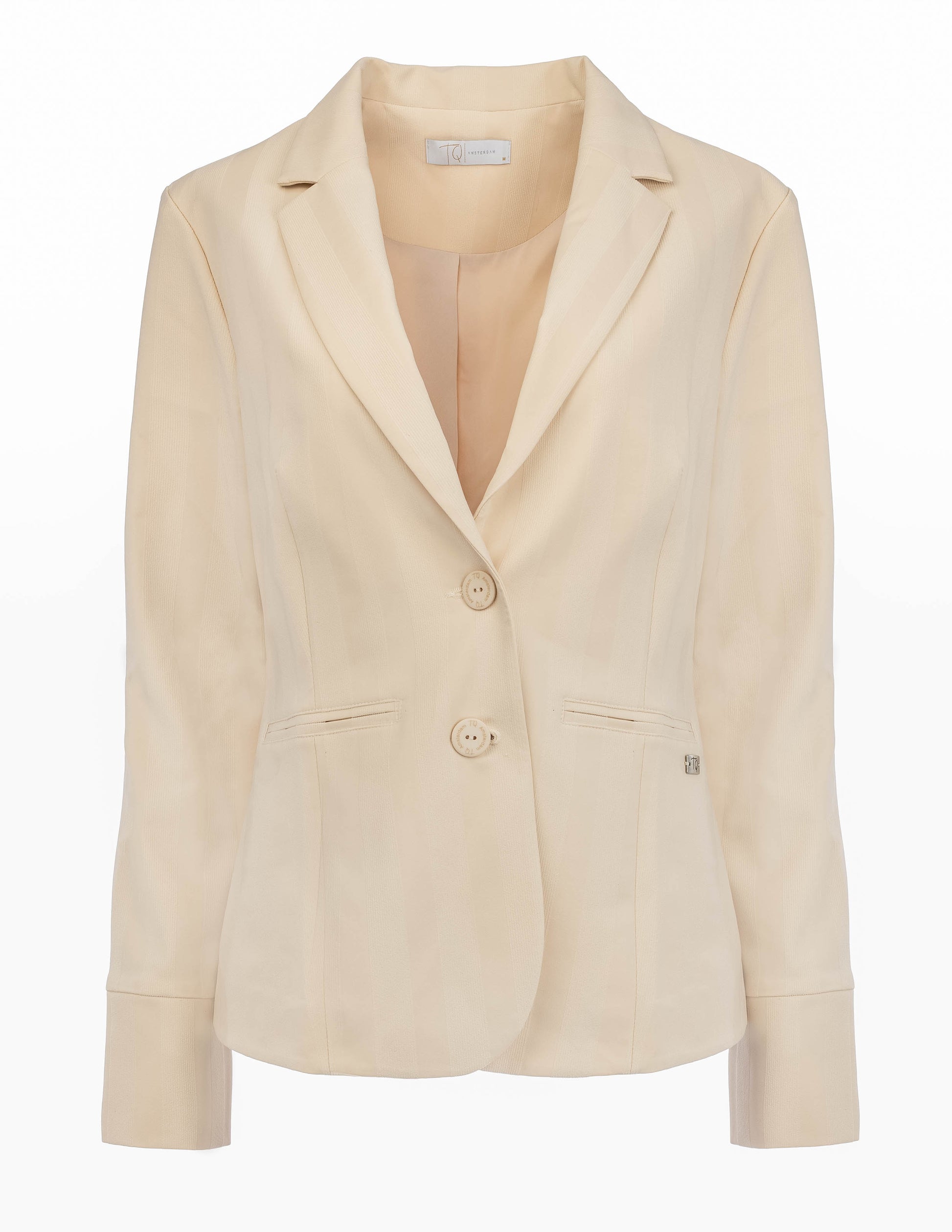 Deze elegante blazer in een zachte beige tint straalt verfijning en moderniteit uit. De subtiele pastelnuance geeft het klassieke ontwerp een frisse, vrouwelijke uitstraling en maakt dit jasje perfect voor zowel zakelijke als casual combinaties.
