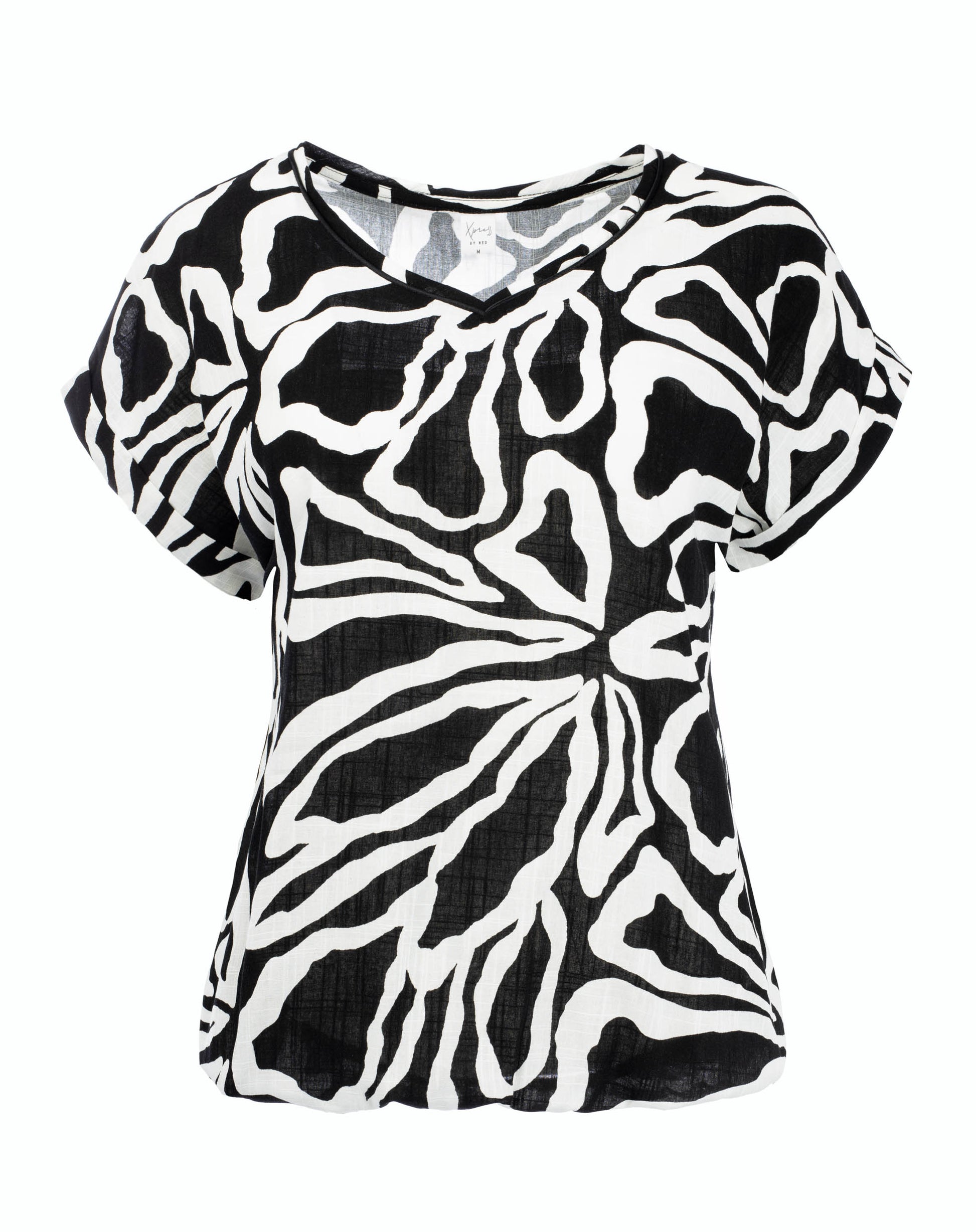 Deze stijlvolle top met abstracte zwart-witte print is een krachtige eyecatcher voor een moderne, vrouwelijke look. Het grafische dessin in contrasterende zwart- en wittinten geeft de top een tijdloze en modieuze uitstraling, terwijl het speelse lijnenspel zorgt voor een dynamisch effect. De ronde hals houdt het ontwerp rustig en veelzijdig.