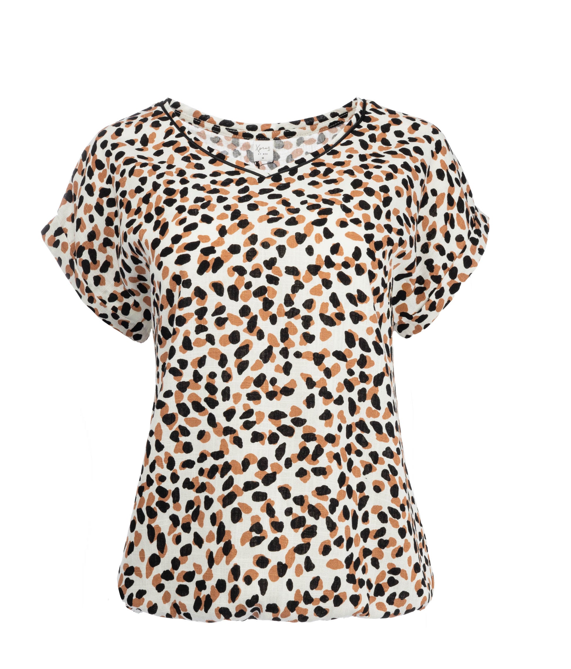 Deze stijlvolle top met een speelse animal-inspired print in tinten zwart, beige en warmbruin geeft je outfit direct een moderne en levendige uitstraling. Het grafische dessin zorgt voor een eigentijdse look, terwijl de zachte kleurcombinatie het geheel vrouwelijk en makkelijk combineerbaar maakt.