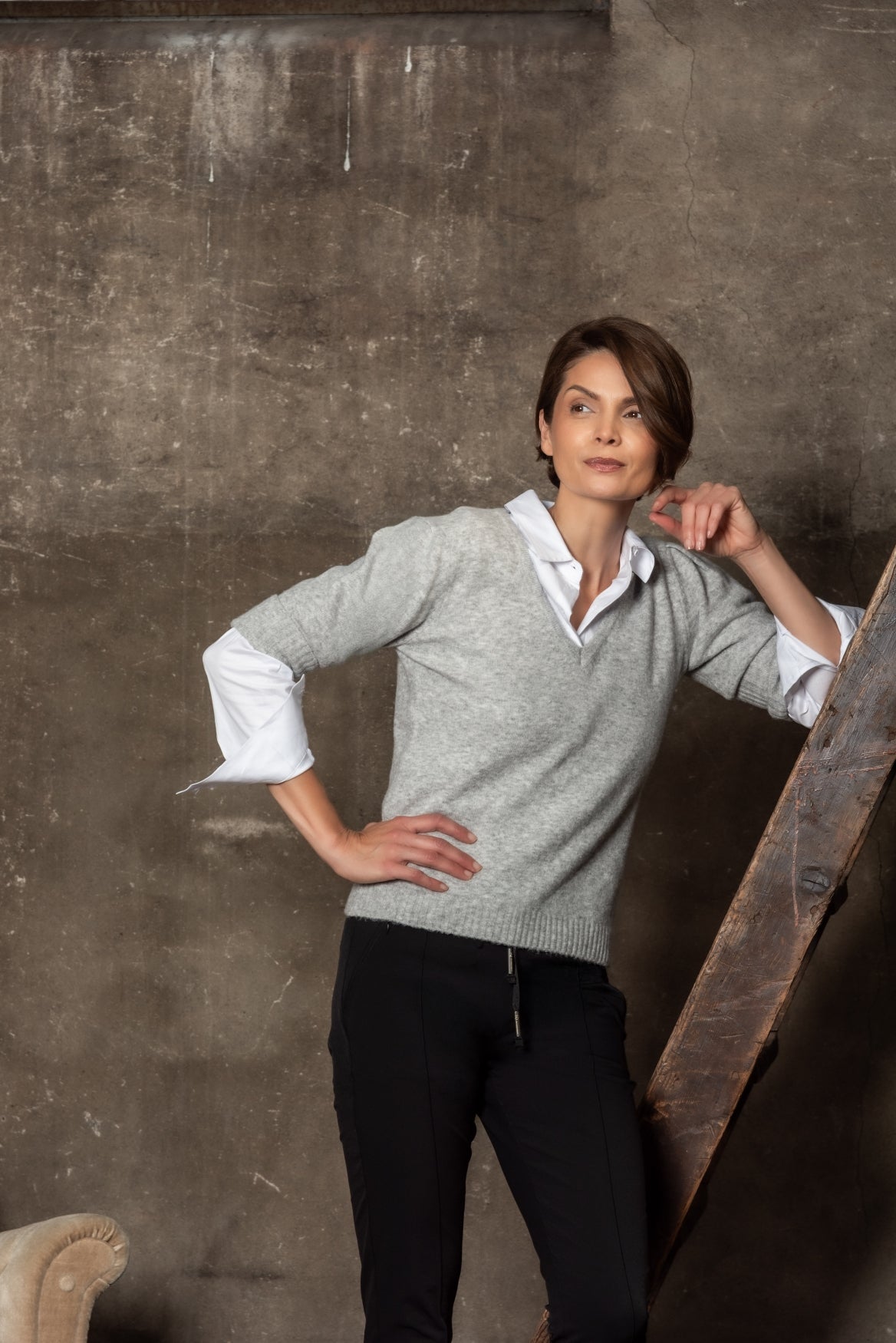 • Lange wijde mouwen met elastisch detail