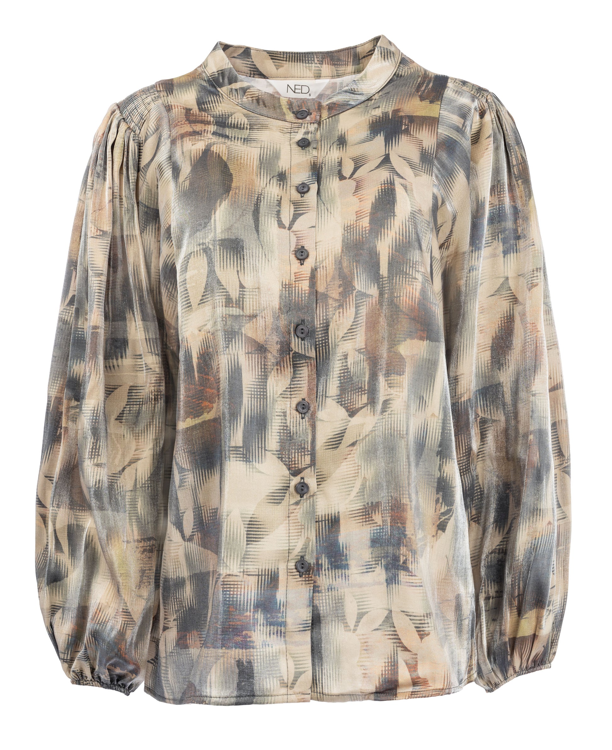 Blouse met Hoge Kraag & Ballonmouwen- NED