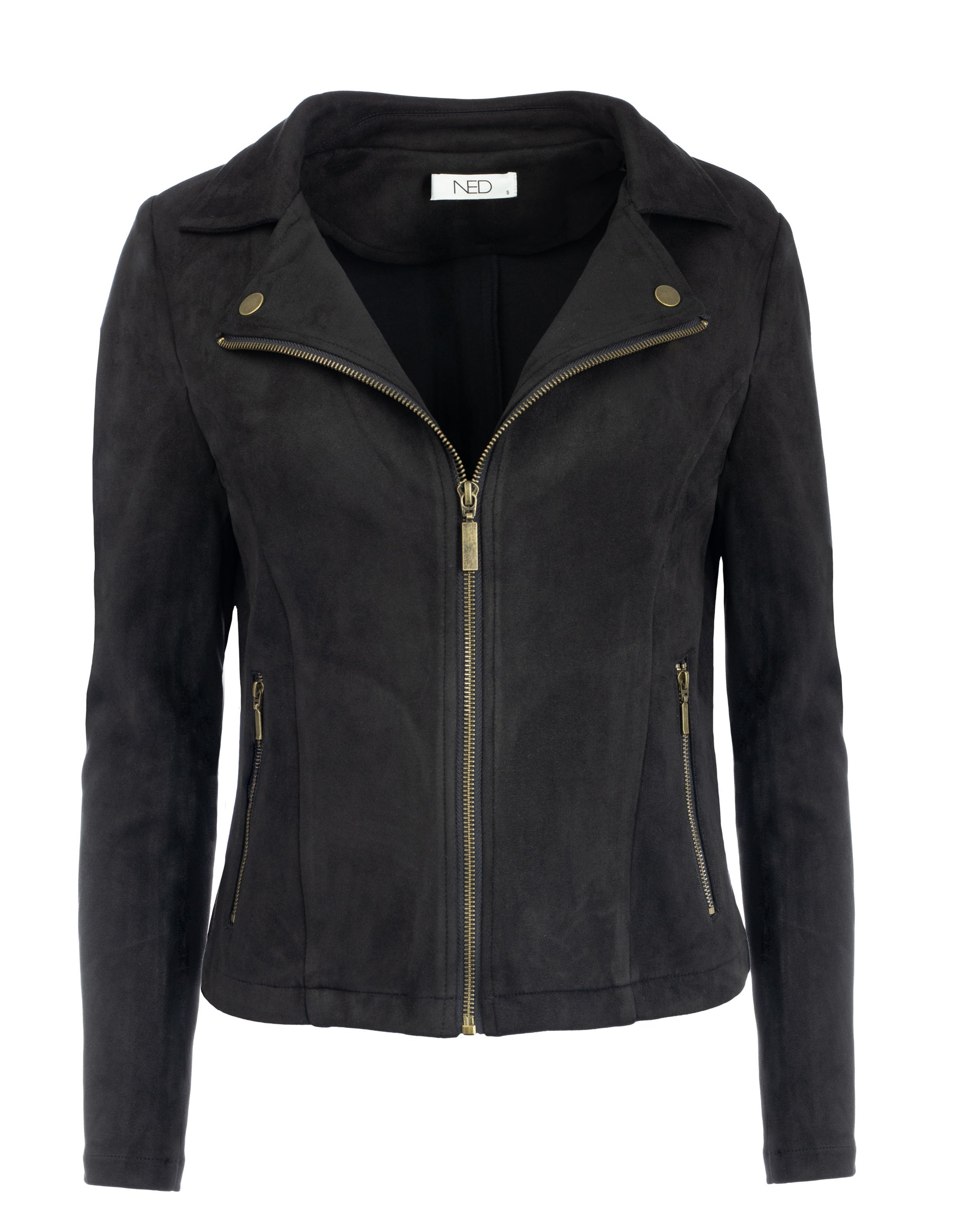Draag dit suedine jack casual met jeans en sneakers, of combineer het met een rok en laarsjes voor een vrouwelijke, stoere look.